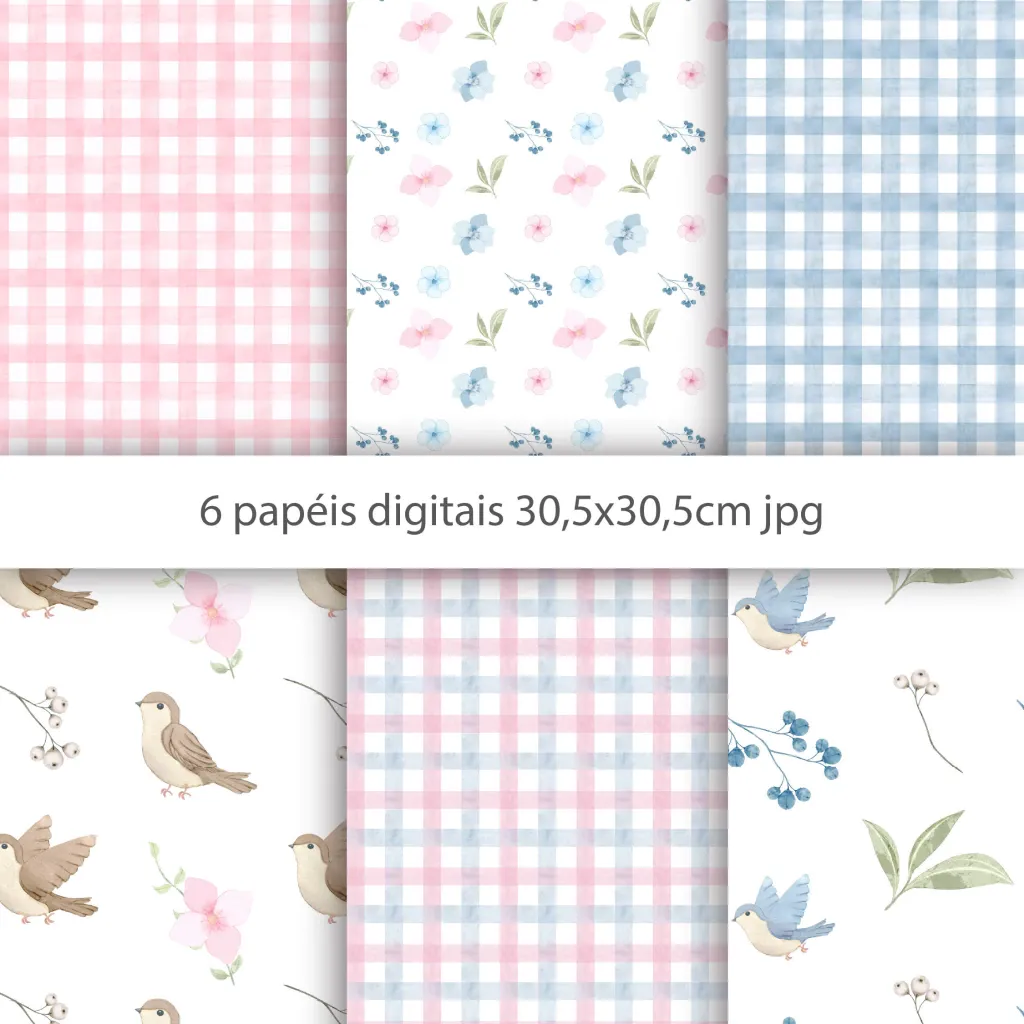 06 Papéis Digitais em JPG: Texturas coordenadas para fundos de convites, scrapbooking e embalagens.