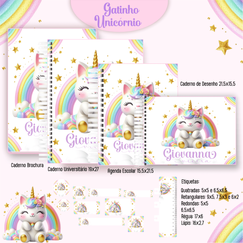 Gatinho Unicórnio – Kit Escolar 2025 (Pamella Vieira)