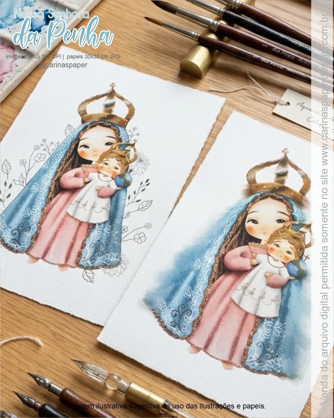 • 43 Ilustrações exclusivas de Nossa Senhora da Penha em estilo delicado e inspirador (formato PNG) entre variações, florais e textos