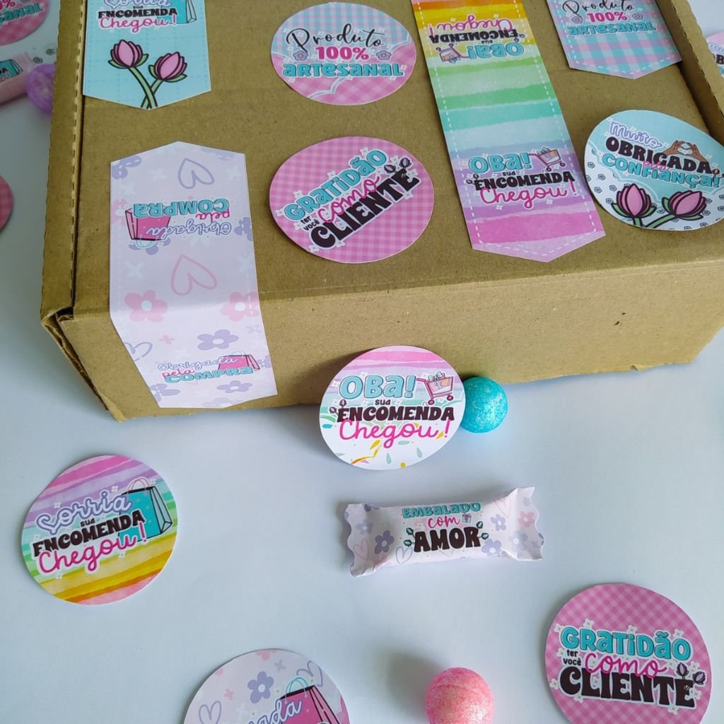 – 4 Artes De Adesivo para fechar Caixa/Sacola 4x13cm