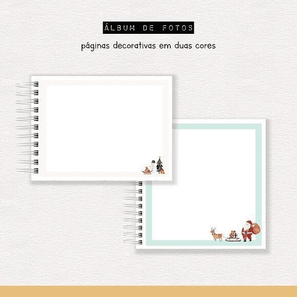 _ Os álbuns de fotos contém página de início e verso frase natálina e possui 60 páginas decoradas. (indico gramatura 180)