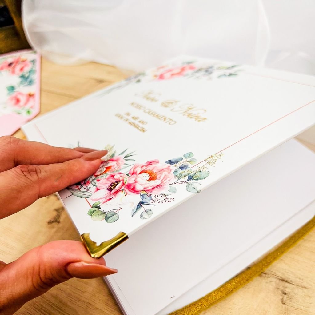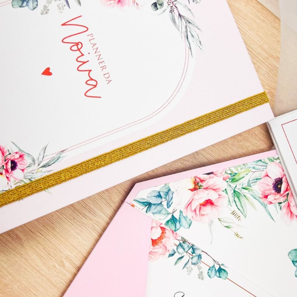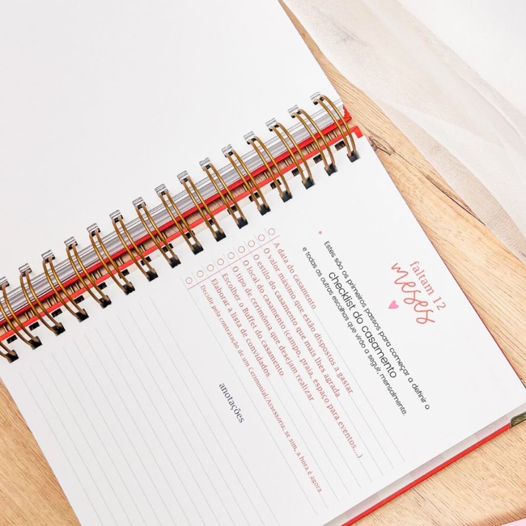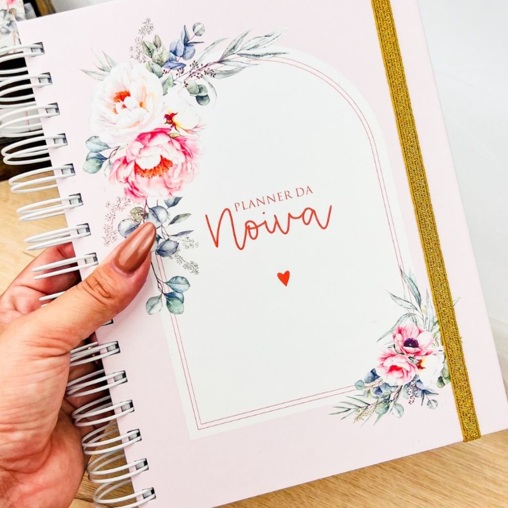 Divisórias: NOIVOS, PREPARATIVOS, CERIMÔNIA E FESTA, LEMBRANCINHAS, CONVIDADOS, FORNECEDORES, CHÁS, LUA DE MEL, CHECKLIST E ANOTAÇÕES.