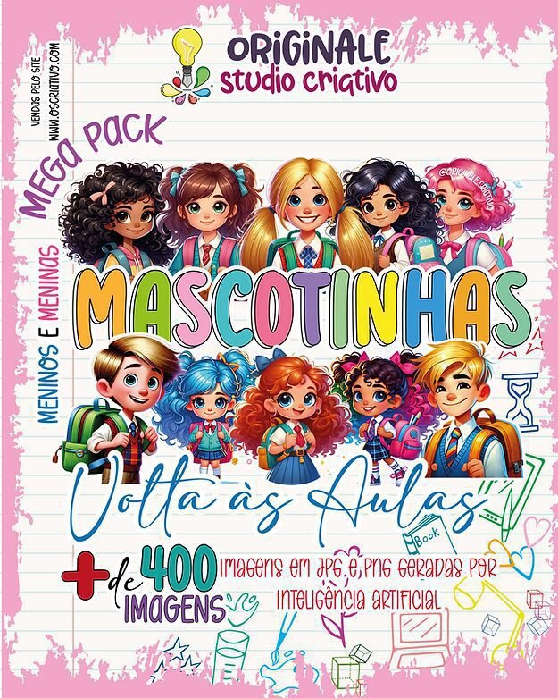 Chegou o Mega Pack Mascotinhas Volta às Aulas, trazendo +400 imagens incríveis em JPG e PNG geradas com Inteligência Artificial!