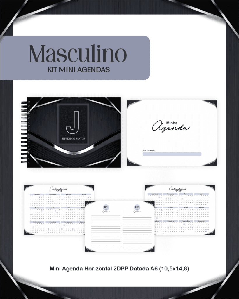 Masculino – Mini Agendas Horizontais A6 – 2026 (Pamella)