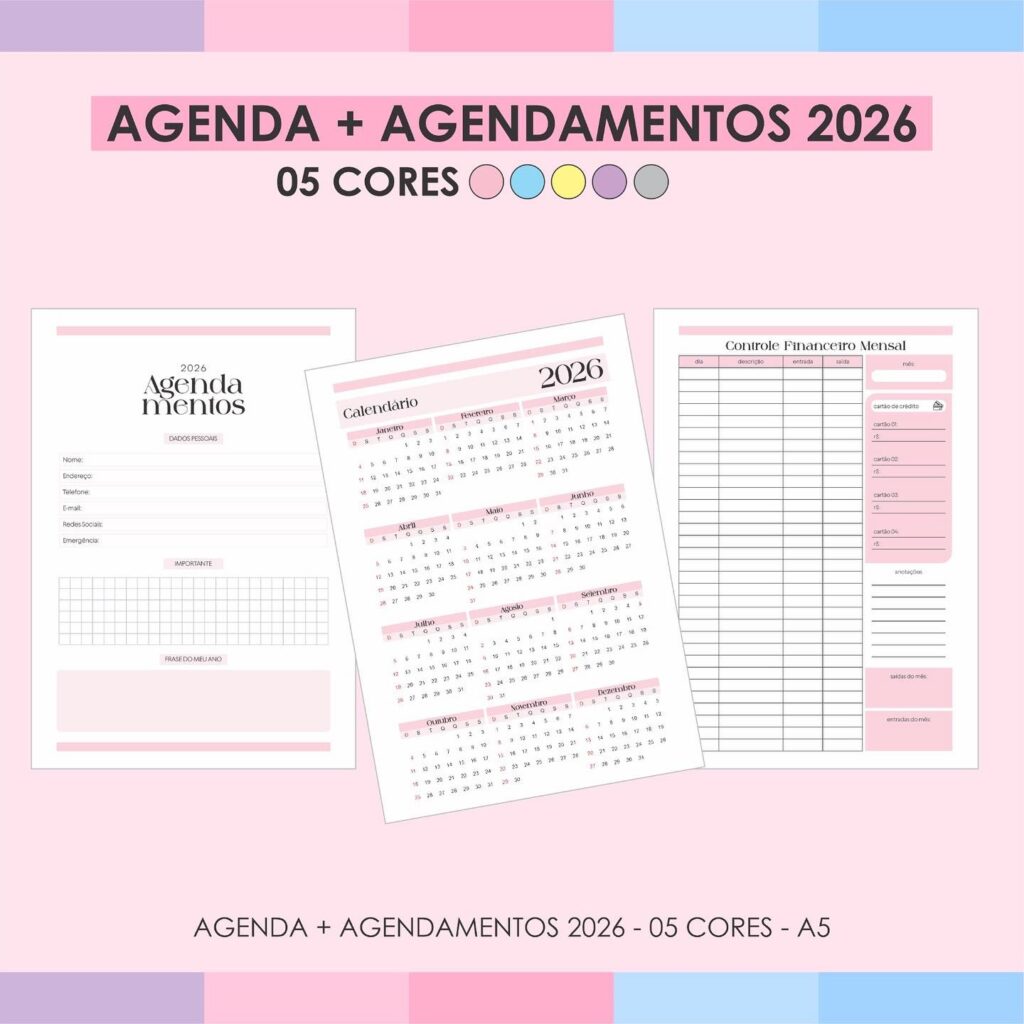 Arquivo Agenda + Agendamentos 2026 – 05 Cores
