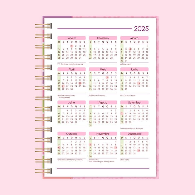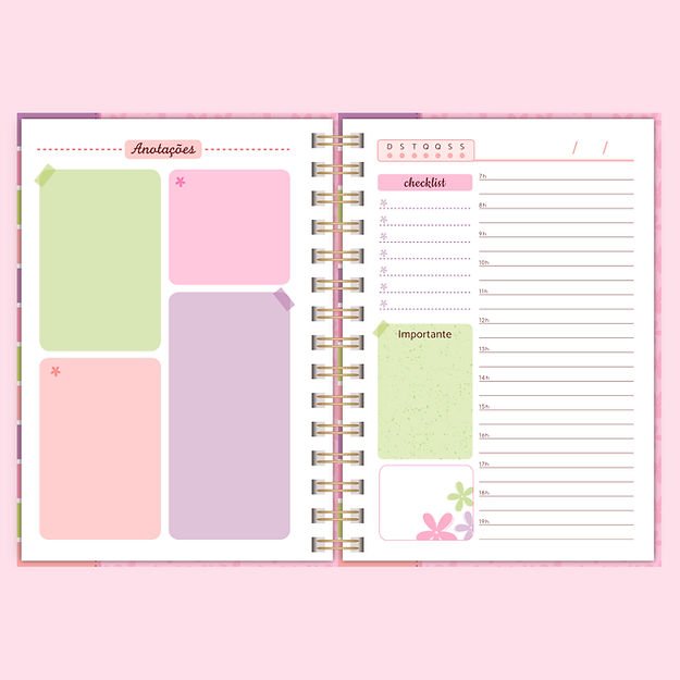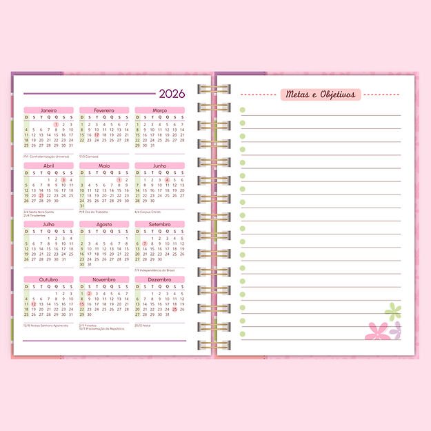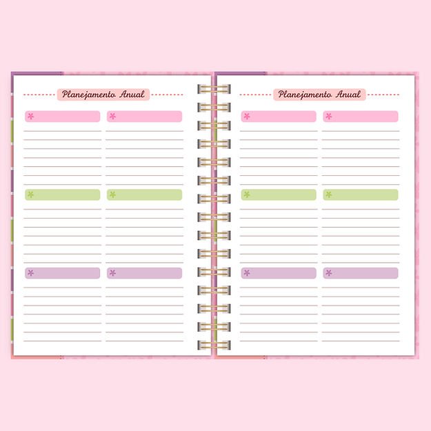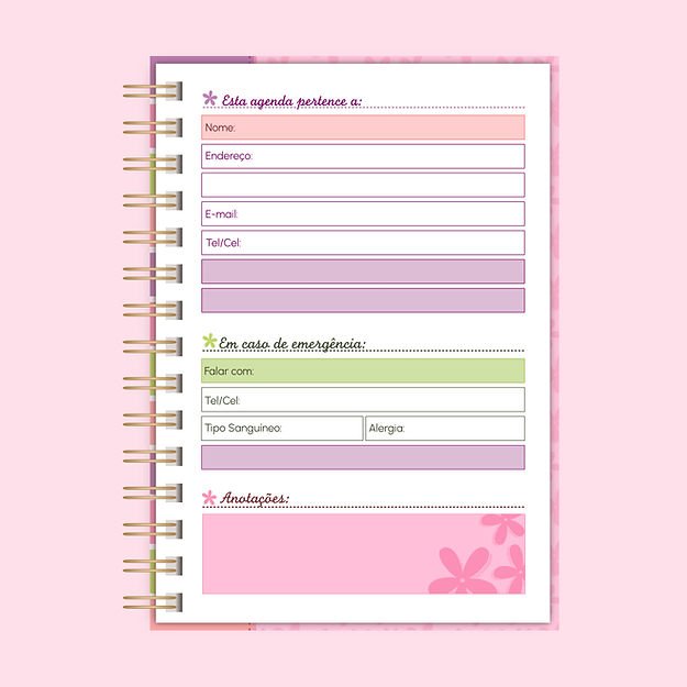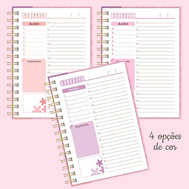 4 opções de cor de Miolo para impressão SEM DATA – colorido / coral / rosa / lilás