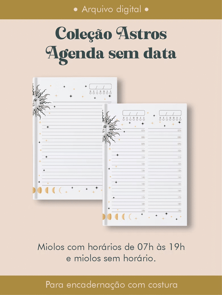 Miolo Agenda Sem Data Coleção Astros Costura (Perfeito Miolo)