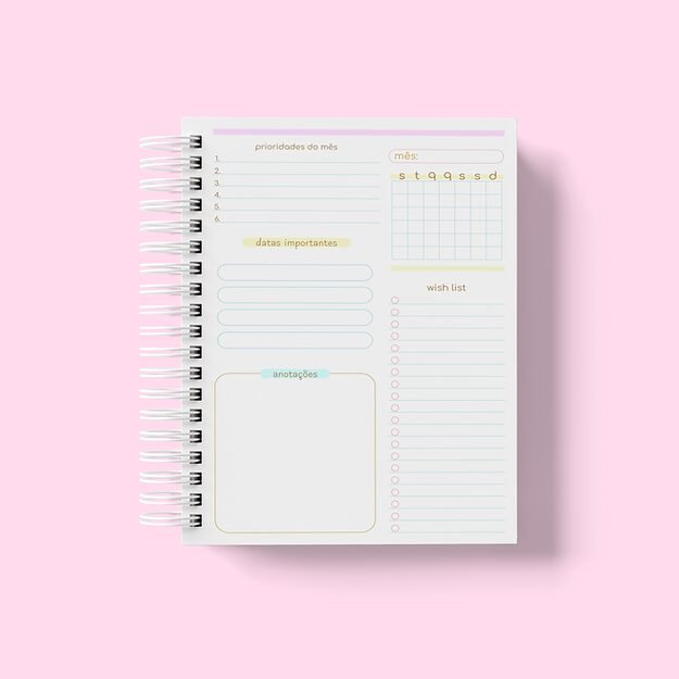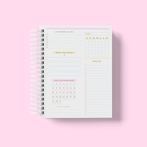 – Prioridades do mês, datas importantes, wish list, opção com ciclo e sem ciclo menstrual.
