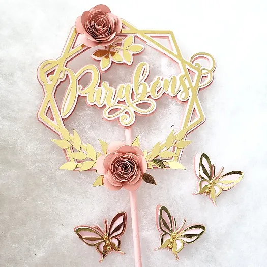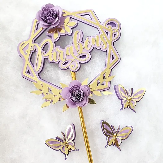 Molde Combo Topo Hexagonal Parabéns Floral – DXF e SVG (Abelha de Papel)