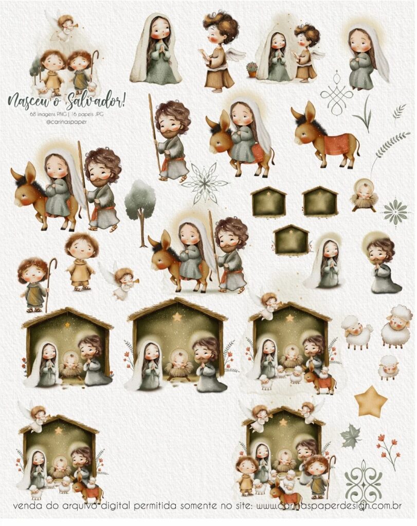 O kit digital Nasceu o Salvador foi criado para quem ama transformar fé e beleza em produtos que tocam o coração. É um material completo para papeleiras que desejam oferecer algo especial no Natal. Ele traz cenas marcantes do nascimento de Jesus em um estilo suave e acolhedor, perfeito para agendas, cadernos, livrinhos, marcadores e presentes personalizados.