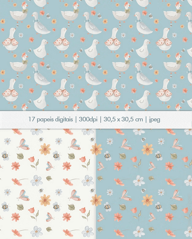 - 17 papeis digitais (30,5cm x 30,5cm) JPEG e PNG (fundo transparente) – 300dpi.