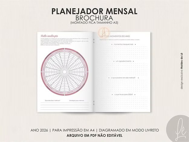 - Visão mensal em 2 páginas;