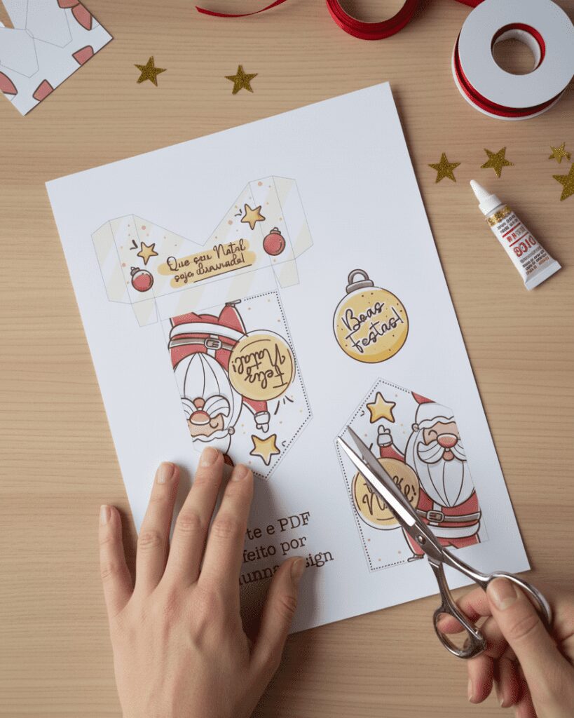 Este produto é um arquivo digital em PDF, criado no estilo exclusivo Lunna Design, trazendo um porta-BIS natalino ilustrado com Papai Noel, estrelinhas e mensagens carinhosas como “Que seu Natal seja iluminado!” e “Boas Festas!”.