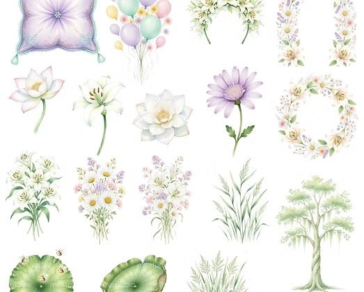 Conjunto de 76 Clipart e 8 Papéis de fundo.