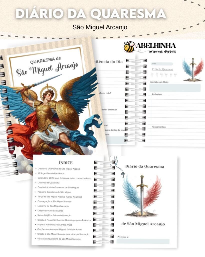 O miolo diário da quaresma de São Miguel , para acompanhar os 40 dias da Quaresma 🙏, ele está super completo ! Conta ainda com as orações , novena , e terço de São Miguel, 10 pags para anotar as penitências e Jejum , e mais as folhas pautadas