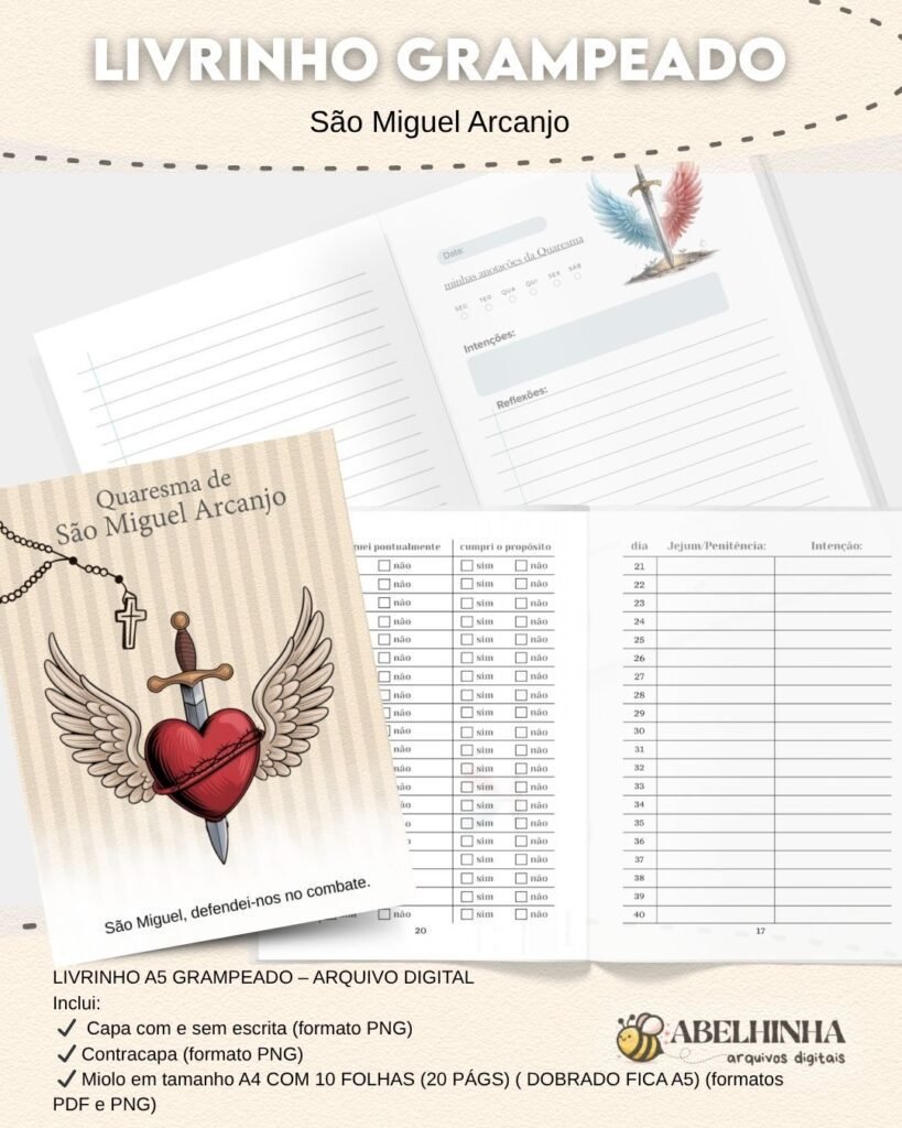A versão Caderno pra você vender o ano todo 🥳🥳🥳🥳, no miolo caderno o arquivo contém a novena , o terço, orações e folhas pautadas … Não contendo os dias da quaresma ❤️