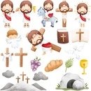 ✅ 18 Cliparts temáticos de Páscoa: coelhos, ovos decorados, flores, cenouras, cestinhas e muito mais