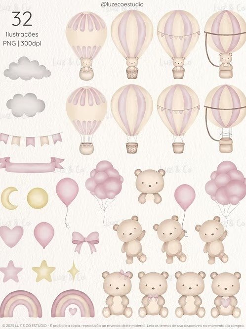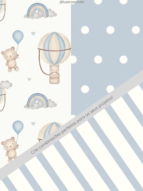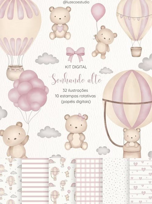 Combo especial com as cores azul e rosa do tema Sonhando Alto, reunindo elementos e papéis digitais com um super desconto!