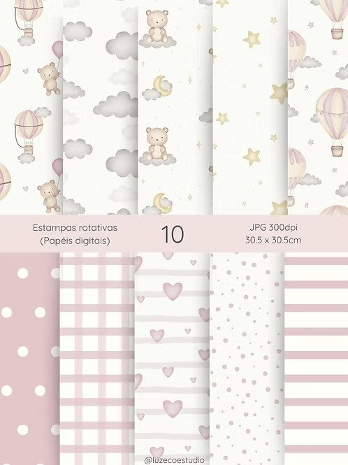 – Estampas rotativas/papéis digitais em JPEG 300dpi (alta resolução)