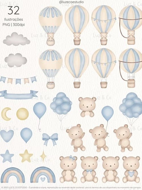 – AZUL = 32 ilustrações + 10 estampas rotativas/papéis digitais