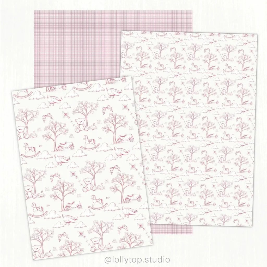 Papeis digitais coordenados e bordas em babado