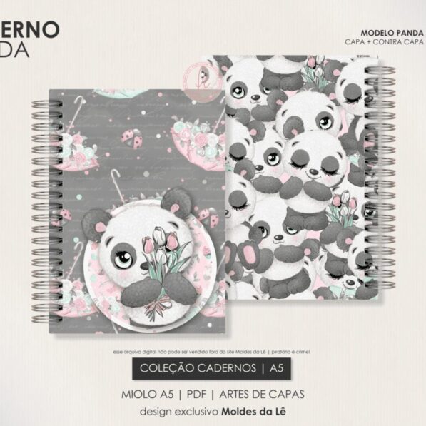 Caderno Pautado A5 – Panda (Moldes da Lê)